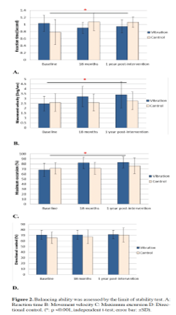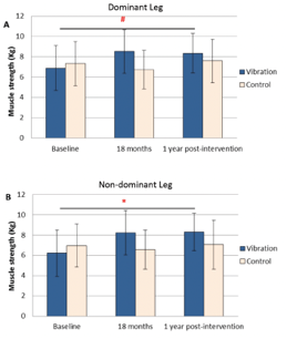 Population: 59 healthy women aged 60+ years from previous clinical study (Leung, et al 2014). 34 vibration, 25 controlled.