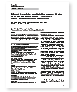 This study evaluated the use of low-magnitude high frequency vibration (LMHFV) program to reduce falls in older women. After 18 months, the incidence rate of falls was 46% lower in the vibration group than in the control group. The incidence rate of fall related fractures was not significantly different between the vibration and control group.